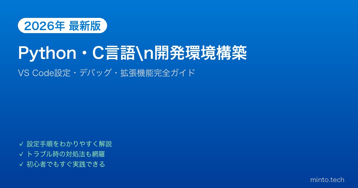 Home / Microsoft / Windows / 【2026年最新版】WindowsでPython・C言語開発環境を構築する完全ガイド【VS Code設定】