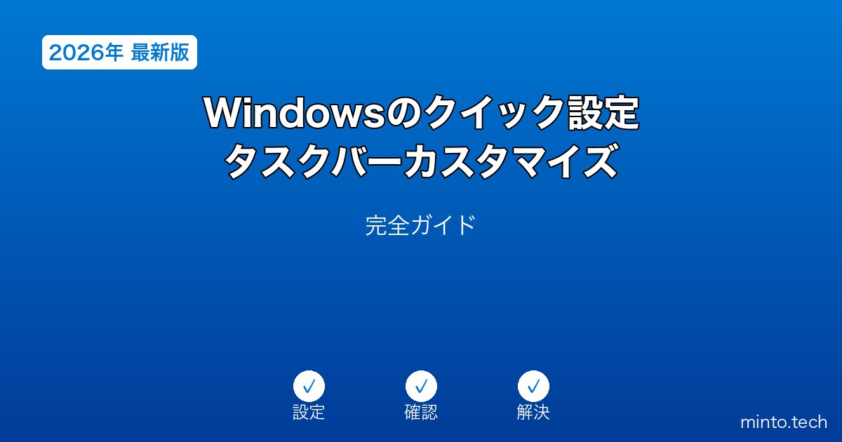 Home / Microsoft / Windows / 【2026年最新版】Windowsのクイック設定・タスクバーカスタマイズ完全ガイド