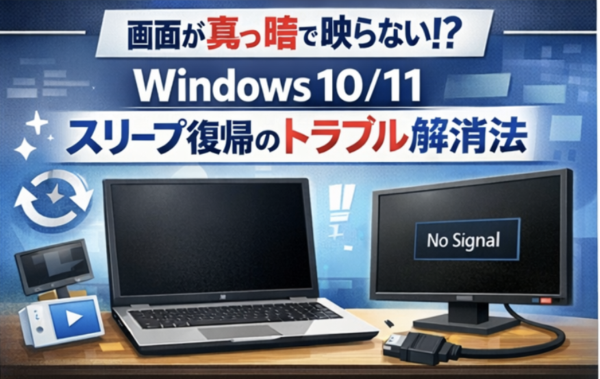 パソコンをスリープから再開したのに、画面が真っ黒のまま何も表示されない──こんな経験はありませんか?