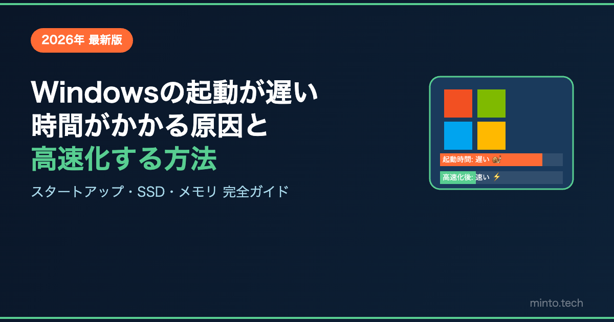 Windowsを起動するたびに「また時間がかかる…」とため息をついていませんか?起動に1〜2分以上かかるのは、HDDの使用・スタートアップアプリの増えすぎ・Windowsの設定など、複数の原因が重なっているケースがほとんどです。この記事では初心者でもすぐに実践できる高速化の方法を8ステップで解説します。設定変更だけで劇的に改善できる場合も多いので、ぜひ最後まで読んでみてください。