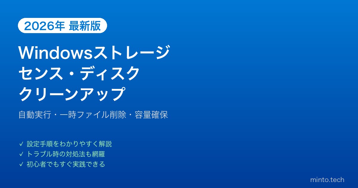 この記事では、ストレージセンスの設定・自動実行から、一時ファイルの削除、ディスククリーンアップの使い方までを初心者向けにわかりやすく解説します。