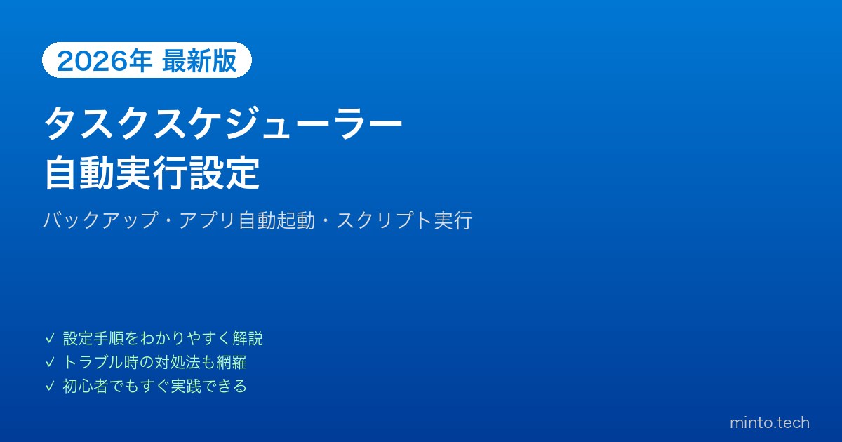 Windowsのタスクスケジューラーを使うと、特定の時刻・PC起動時・ログイン時などのタイミングで、プログラムやスクリプトを自動的に実行させることができます。毎朝決まった時間にバックアップを取る、定期的にファイルを整理するスクリプトを走らせる、PCログイン時に必要なアプリを自動起動するなど、手作業を自動化してWindowsをより賢く使いこなせます。この記事では、タスクスケジューラーの基本操作から実践的な活用例まで、2026年最新版として初心者にもわかりやすく完全解説します。