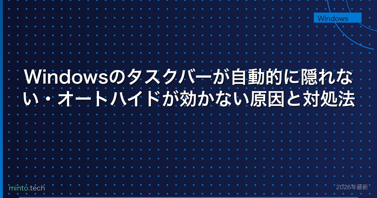 【2026年最新版】Windowsのタスクバーが自動的に隠れない・オートハイドが効かない原因と対処法