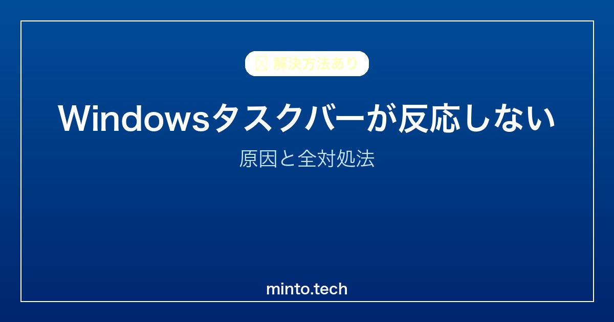 Windowsのタスクバーがクリックしても反応しない、スタートボタンが押せない——こうした困った状況は意外とよく起こります。特にWindows 11にアップグレードした後やアップデート後に発生しやすい問題です。この記事では、タスクバーが反応しない原因と確実な対処法を詳しく解説します。