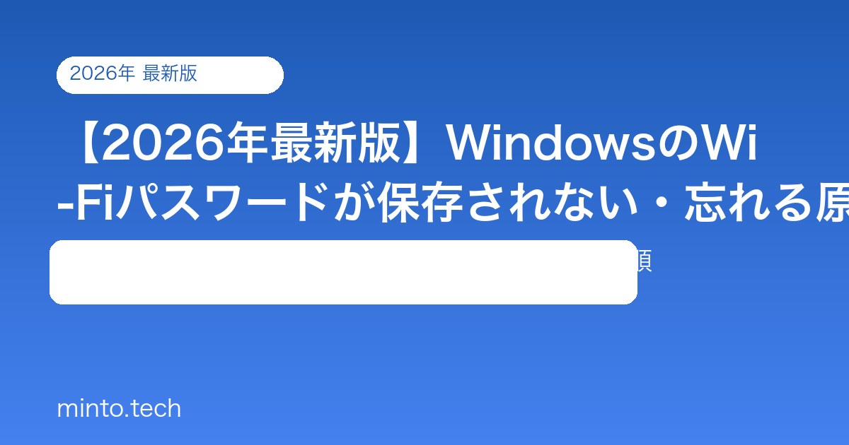 WindowsのWi-Fiパスワードが保存されない問題は、「自動的に接続する」の設定確認とネットワークプロファイルの削除・再登録で多くの場合解決します。コマンドプロンプトでの確認・リセットも効果的な方法です。