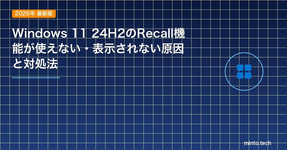 Home / Microsoft / Windows / 【2026年最新版】Windows 11 24H2のRecall機能が使えない・表示されない原因と対処法