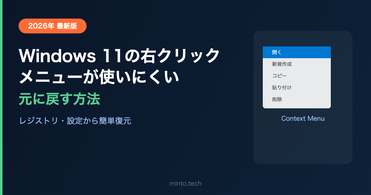 この記事では、Windows 11の新しい右クリックメニューを旧来のWindows 10スタイルに戻す方法と、コンテキストメニューのカスタマイズ方法を解説します。