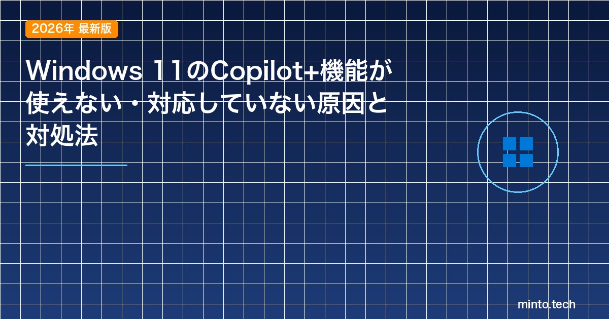 | ハードウェア非対応 | NPU 40TOPS未満のPCはCopilot+非対応 |