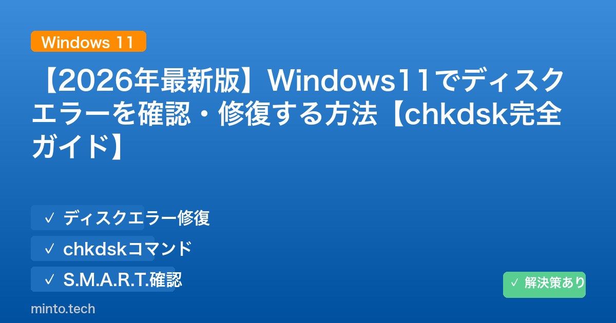 Home / Microsoft / Windows / 【2026年最新版】Windows11でディスクエラーを確認・修復する方法【chkdsk完全ガイド】