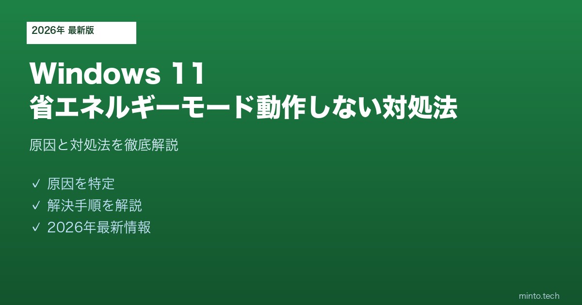 【2026年最新版】Windows 11の省エネルギーモード(エナジーセーバー)が動作しない原因と対処法【完全ガイド】