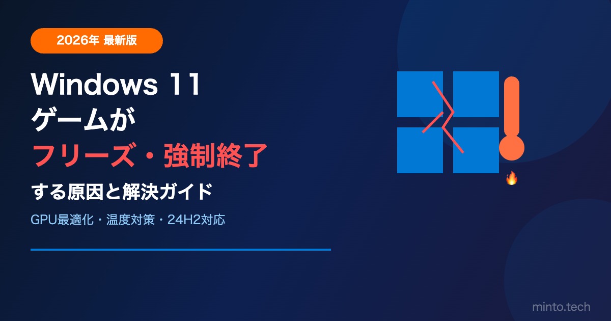 本記事では、Windows 11でゲームがフリーズ・強制終了する主な原因10個と、NVIDIA・AMD・Intel別のGPUドライバー更新方法、そしてゲームモード・Xbox Game Bar・DirectXの最適化設定を詳しく解説します。