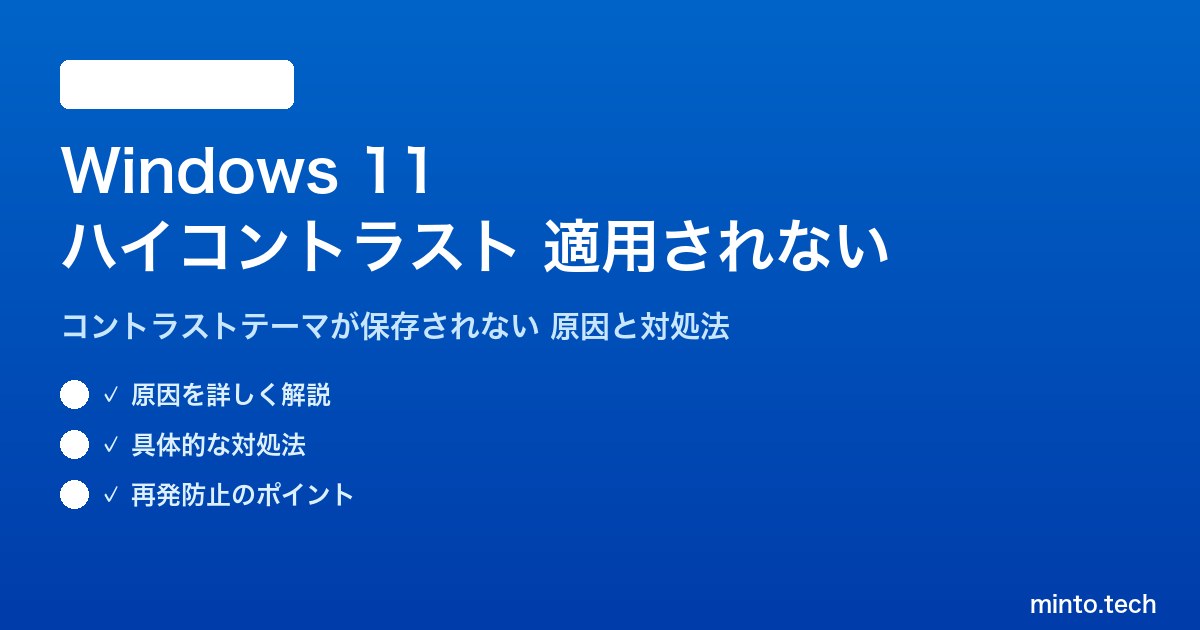 Home / Microsoft / Windows / 【2026年最新版】Windows 11のハイコントラストモード(コントラストテーマ)が正しく適用されない・設定が保存されない原因と対処法【完全ガイド】