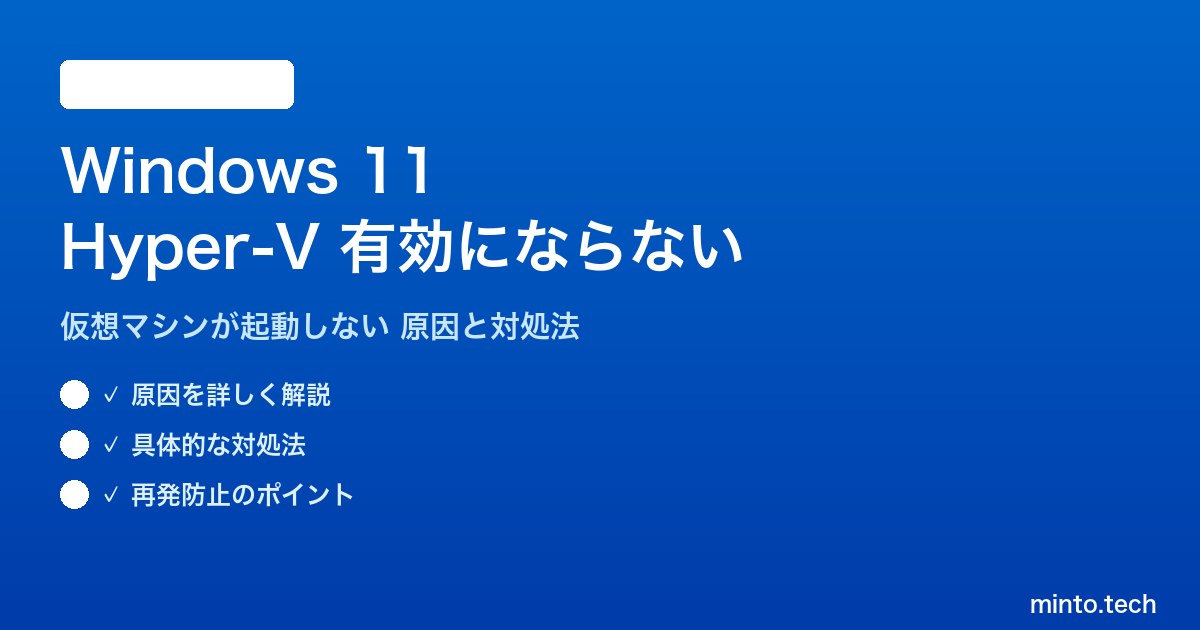 この記事では、Windows 11でHyper-Vが正常に動作しない原因を網羅的に解説し、具体的な対処法をステップバイステップで紹介します。BIOS設定からWindows機能の有効化まで、初心者にもわかりやすく説明します。