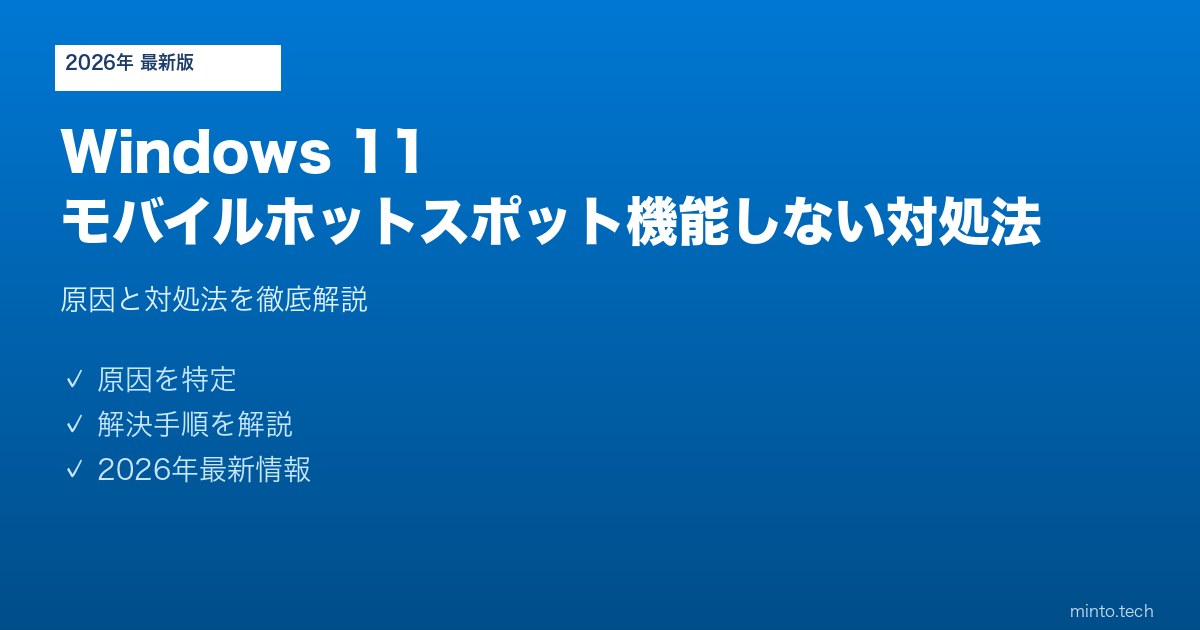 【2026年最新版】Windows 11のモバイルホットスポットが機能しない・他のデバイスから繋がらない原因と対処法【完全ガイド】