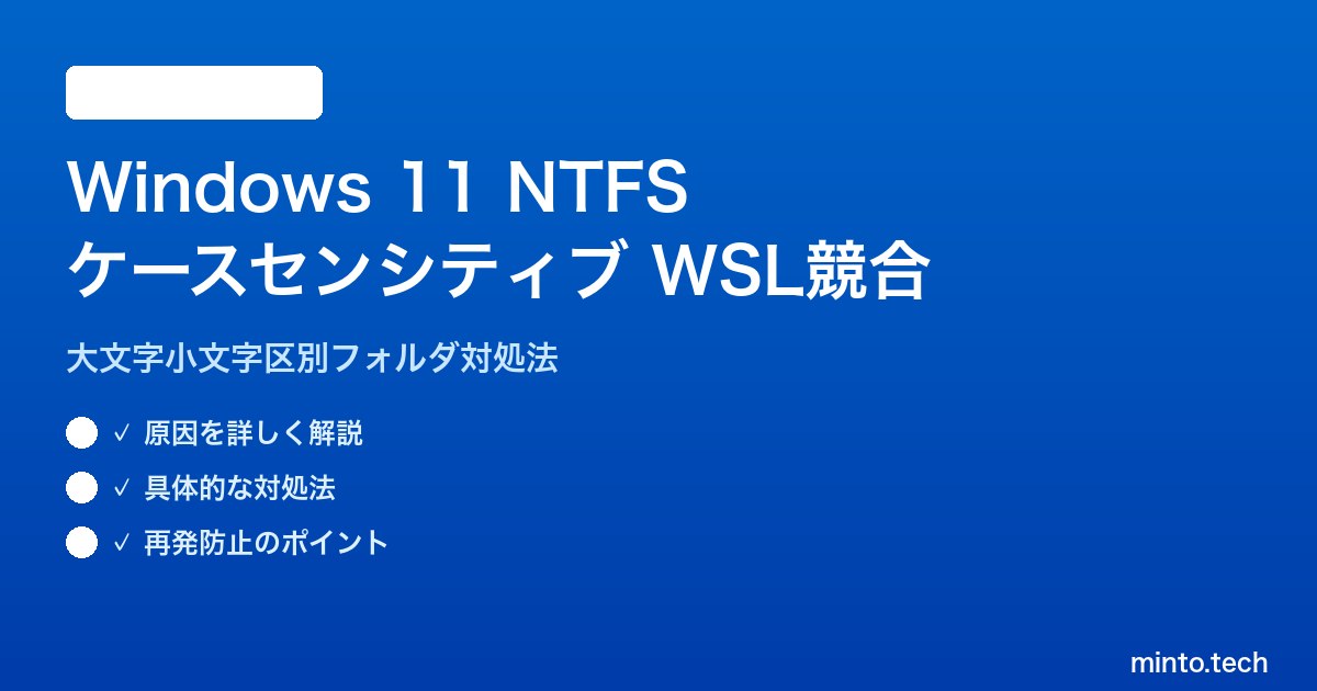 本記事では、NTFSのケースセンシティブ機能とWSLのマウント処理の仕組みを解説したうえで、競合を解消する具体的な手順を紹介します。WindowsとLinuxの開発環境を同一マシンで運用しているエンジニア・開発者向けの完全ガイドです。