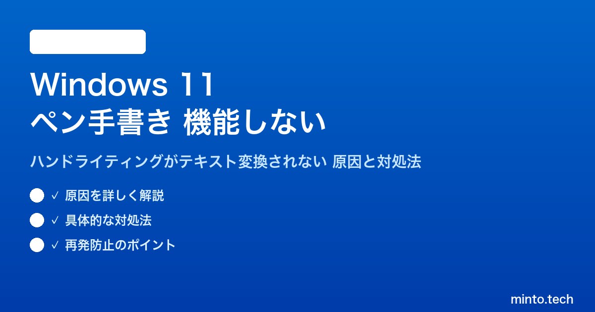 Windows 11のペン入力・手書き認識が機能しない問題は、主にドライバーの不具合、サービスの無効化、日本語手書き認識エンジンの未インストールが原因です。