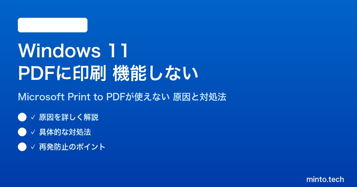 【2026年最新版】Windows 11の「PDFに印刷」(Microsoft Print to PDF)が機能しない・保存できない原因と対処法【完全ガイド】