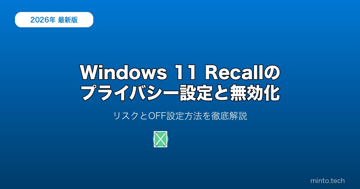 Windows 11の初期セットアップ(OOBE)中に「Recallのスナップショットを保存する」のチェックを外すのが最も簡単な方法です。セットアップ中に設定を見落とした場合は、以下の方法で後から無効化できます。