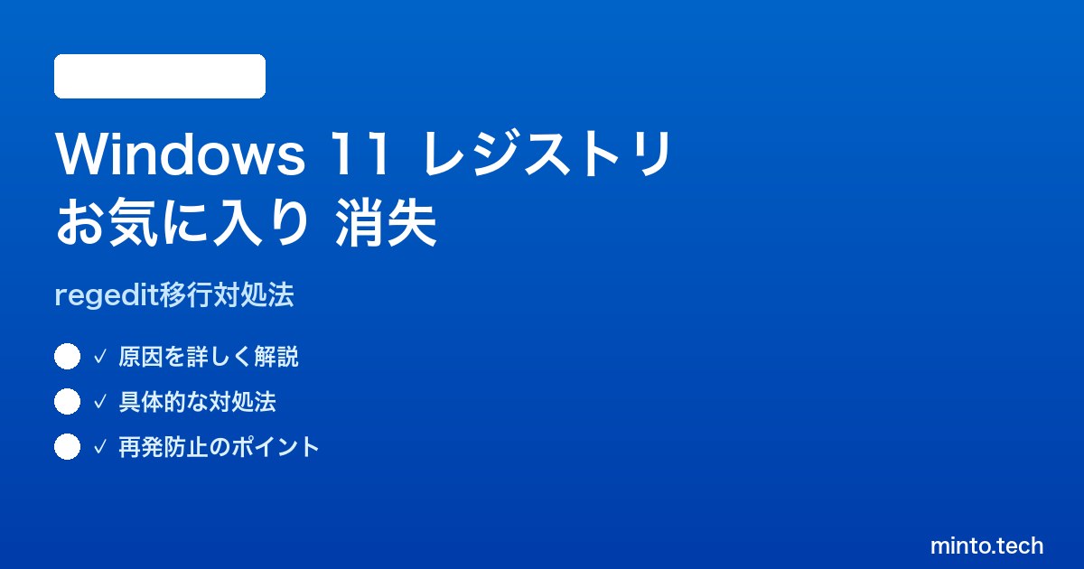 Windows 11のレジストリエディタ(regedit.exe)には、よく使うレジストリキーを素早くアクセスできる「お気に入り」機能があります。しかし、パソコンの買い替えやWindowsの再インストール、またはOSのメジャーアップデート後に、このお気に入りリストが消えてしまう問題が多数報告されています。