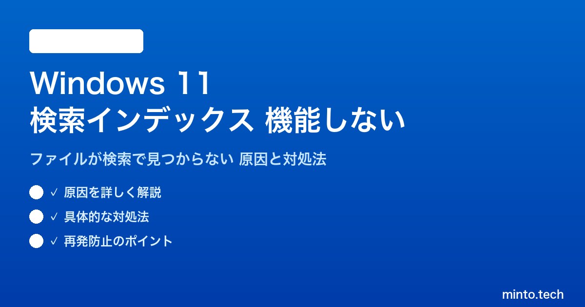 【2026年最新版】Windows 11の検索インデックスが機能しない・ファイルが見つからない原因と対処法【完全ガイド】