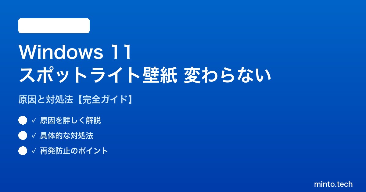 本記事では、スポットライト壁紙が変わらない・更新されない原因を5つに分類し、それぞれの具体的な対処法をわかりやすく解説します。2026年最新のWindows 11環境に対応した情報をお届けします。