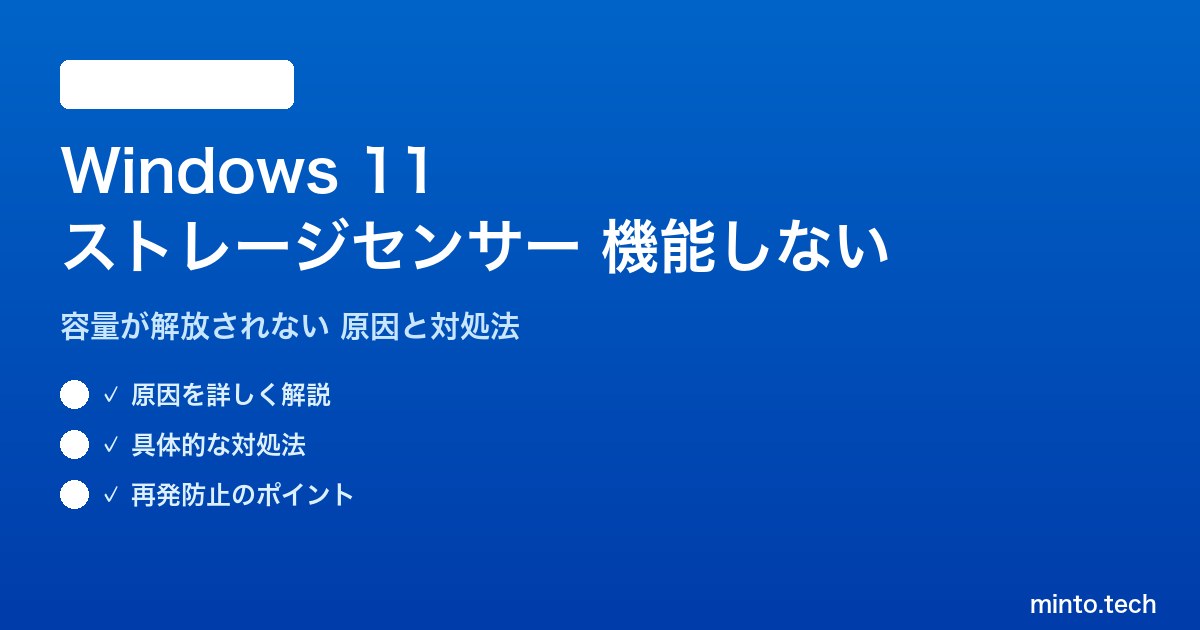 Home / Microsoft / Windows / 【2026年最新版】Windows 11のストレージセンサー(Storage Sense)が機能しない・容量が解放されない原因と対処法【完全ガイド】