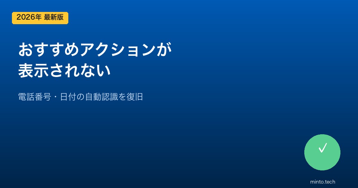 しかし「コピーしても何も出てこない」「電話番号をコピーしたのに認識されない」「以前は出ていたのにいつの間にか消えた」という声が多く寄せられています。本記事ではおすすめアクションが表示されない原因を徹底解説し、確実に直す手順を順番にご案内します。