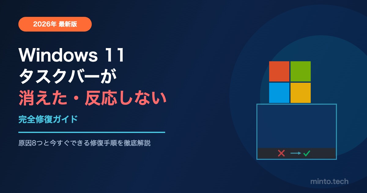 Home / Microsoft / Windows / 【2026年最新版】Windows 11のタスクバーが消えた・クリックしても反応しない時の完全修復ガイド