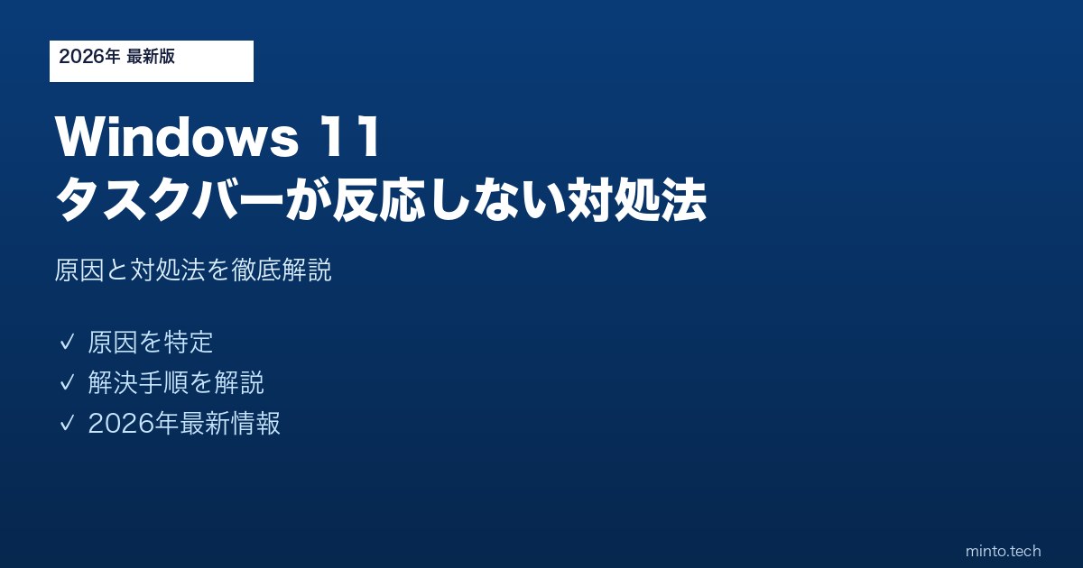 【2026年最新版】Windows 11タスクバーが反応しない・クリックできない原因と対処法【完全ガイド】
