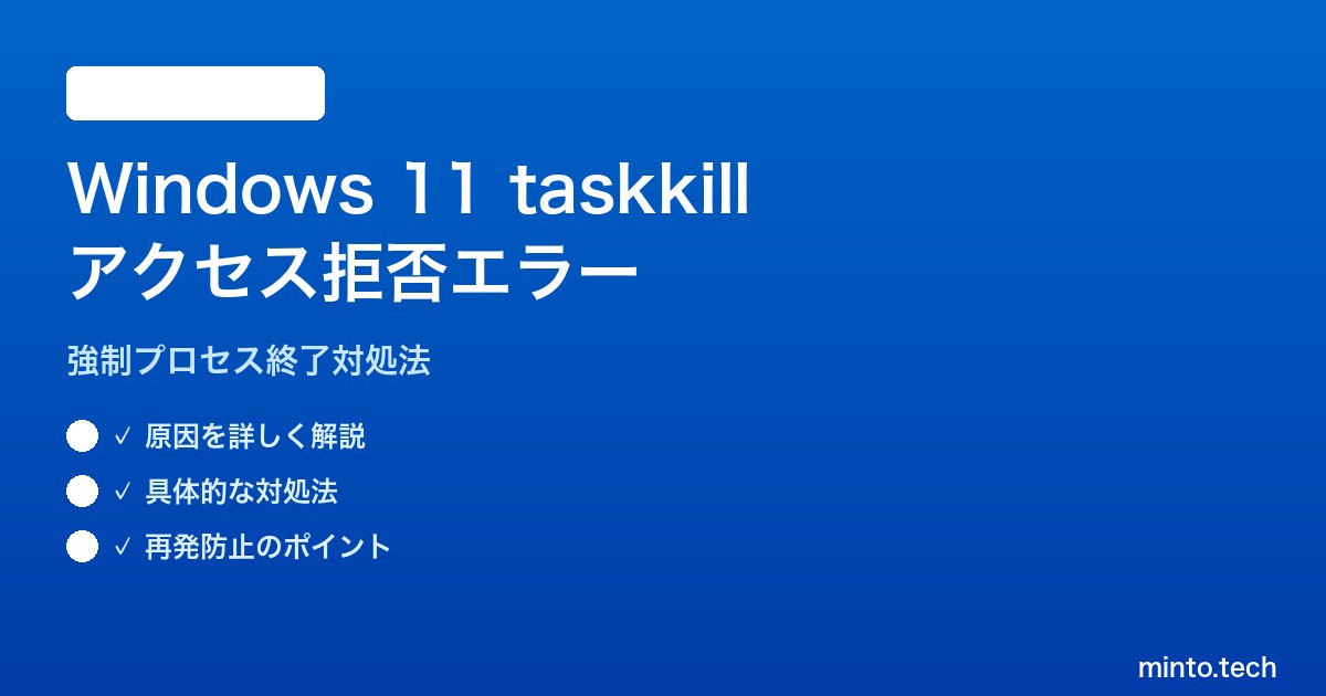 この記事では、Windows 11のtaskkillでアクセス拒否エラーが発生する原因をパターン別に解説し、管理者コマンドプロンプト・PowerShell・PsKillなど複数の方法を使った確実な解決手順を紹介します。