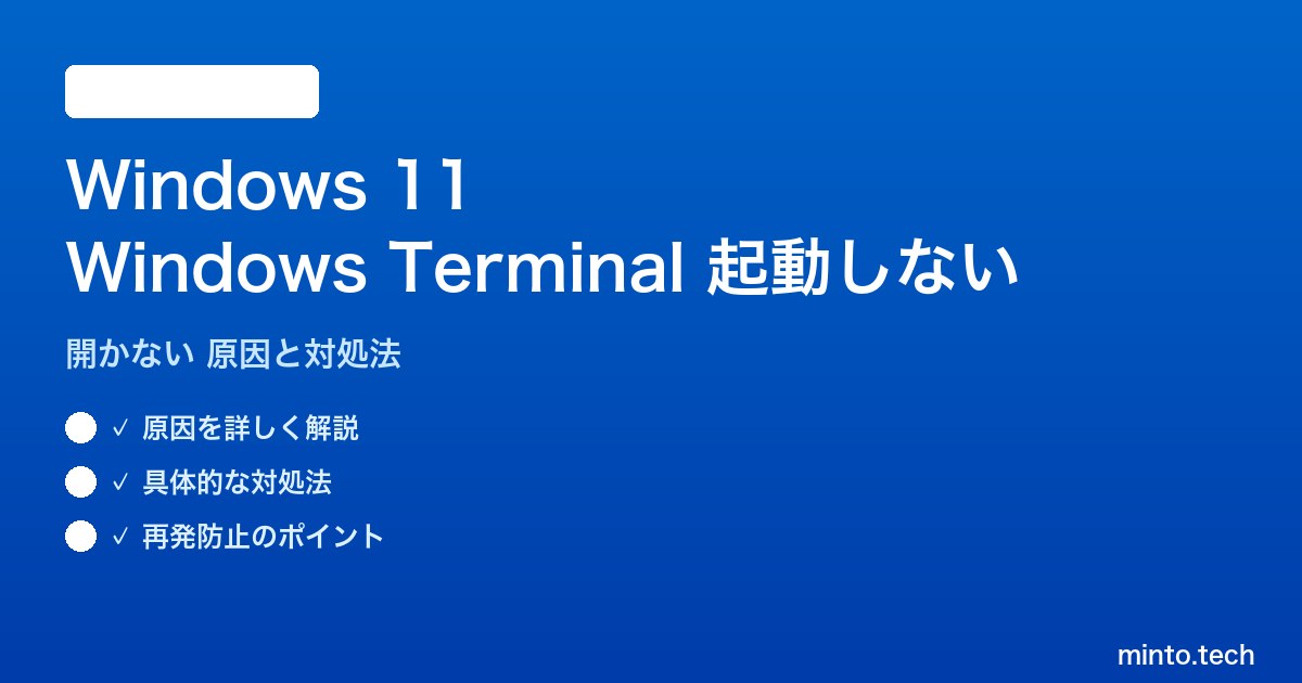 Windows 11でWindows Terminalが起動しない、アイコンをクリックしても反応しない、一瞬開いてすぐ閉じるなどの問題が発生していませんか?この記事では、Windows Terminalが開かない原因を網羅的に解説し、初心者でも実行できる対処法をステップごとに詳しく紹介します。