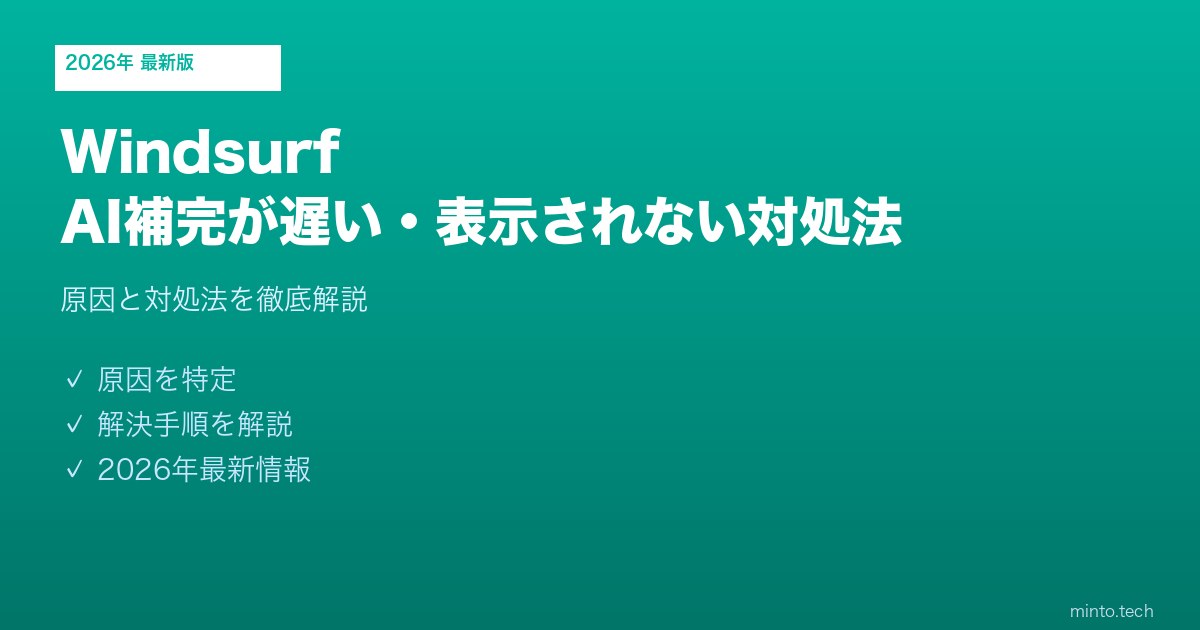 【2026年最新版】Windsurf(Codeium)のAI補完・提案が遅い・表示されない原因と対処法【完全ガイド】