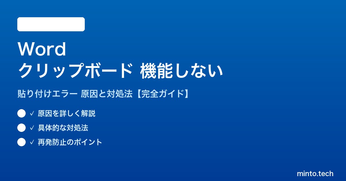 この記事では、Wordのクリップボードが機能しない・エラーになる主な原因と、今すぐ試せる5つの対処法をわかりやすく解説します。2026年最新のOffice環境(Microsoft 365含む)に対応した内容です。