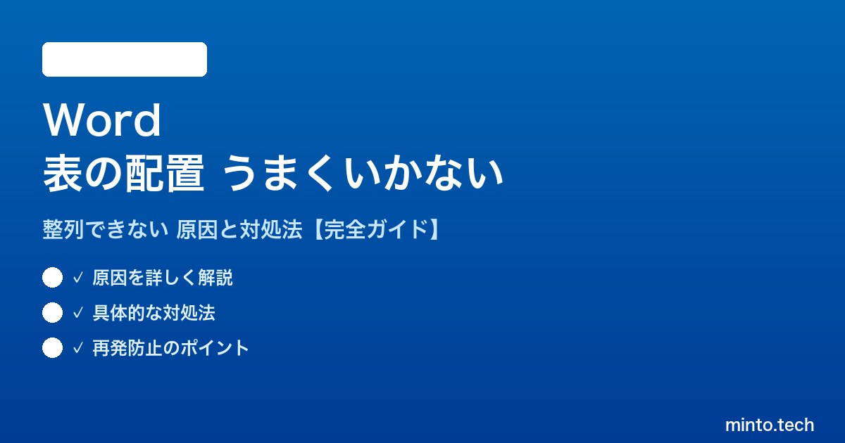 【2026年最新版】Wordの表の配置・整列がうまくいかない原因と対処法【完全ガイド】