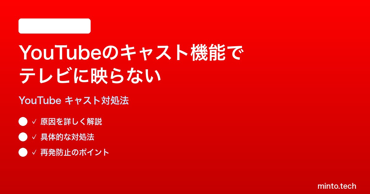 スマートフォンのYouTubeアプリからテレビに映像を飛ばそうとしたのに、キャストアイコンが表示されない、グレーアウトして押せない、またはキャストしたのにテレビ側で何も映らないといった症状に困っていませんか?ChromecastやスマートTVへのキャストは便利な機能ですが、ネットワーク設定やアプリの状態によって動作しないことがあります。本記事では原因の特定から解決手順まで、わかりやすく段階的に解説します。